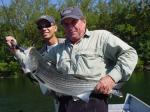 Striped Bass are the bruisers of the Lower American.  Some stay in the system year round.  The main season runs as early as March and as late as September.  A "Striper" can range from a pound to 50.  Most fly fishers I know use 8 weights.  Some use 9 weights just in case that trophy size Striper hits.